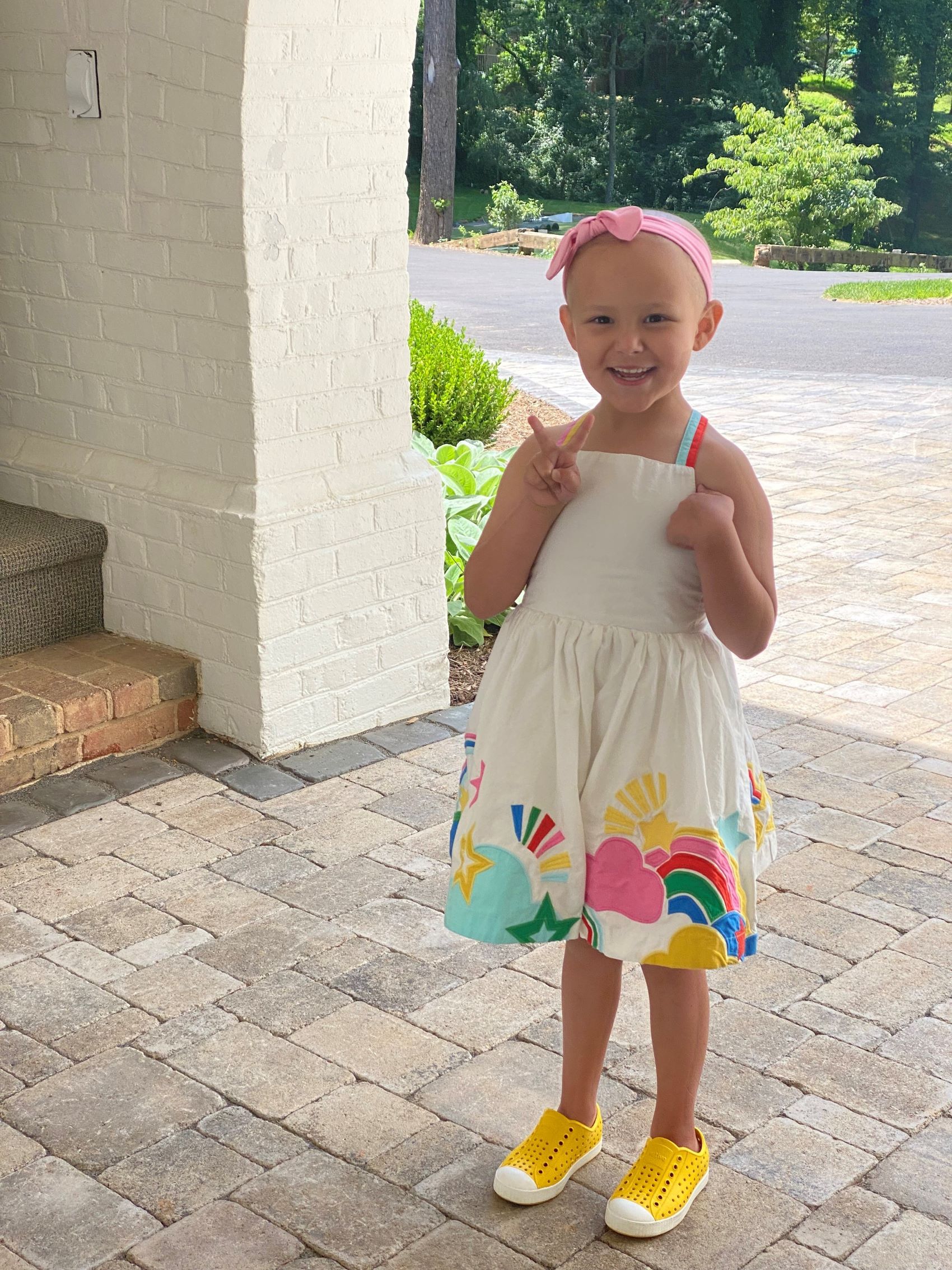 About a week after Charlotte went on the transplant list, a match came up. We were so grateful that our prayers had been answered, only to experience one of the hardest nights of the entire journey. Once Charlotte’s team opened her up for her transplant surgery, they found evidence of an early rupture of her tumor into her abdomen and decided not to give her the liver and deemed her ineligible for a liver transplant. We had to go to the PICU that night with a sweet baby who had been fighting so hard and so brave, with the incisions and wounds to heal of a transplant surgery…but with no transplanted liver. However; the pathology of what the surgeons saw that night was still inconclusive, so we waited for about 6 days until we received a miraculous early morning call from Charlotte’s oncologist. “Its going to be a BIG day guys!!!” Not only had all the pathology come back negative for cancer cells, but the team put Charlotte back on the list for a liver and a perfect match came up immediately!! Charlotte received her life saving liver transplant that night!! We then stayed in Cincinnati for almost 5 more months of transplant surgery recovery, while still getting several more rounds of chemo. In July 2019, we were able to go home to Virginia for the first time in almost 9 months. Charlotte was bald, still had a feeding tube and was still on a handful of daily meds, but we were thrilled to head home, finally.
